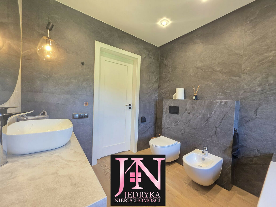 Dzień dobryJędryka Nieruchomości ma przyjemność zaprezentować przepiękną nieruchomość wykończoną w wysokim standardzie gotową do wprowadzenia z projektu Archon Dom pod Jarzębem (N) wersja Termo usytuowanej na 12 arowej działce w pełni zagospodarowanej o powierzchni 114,4m2 w skład której wchodzi: